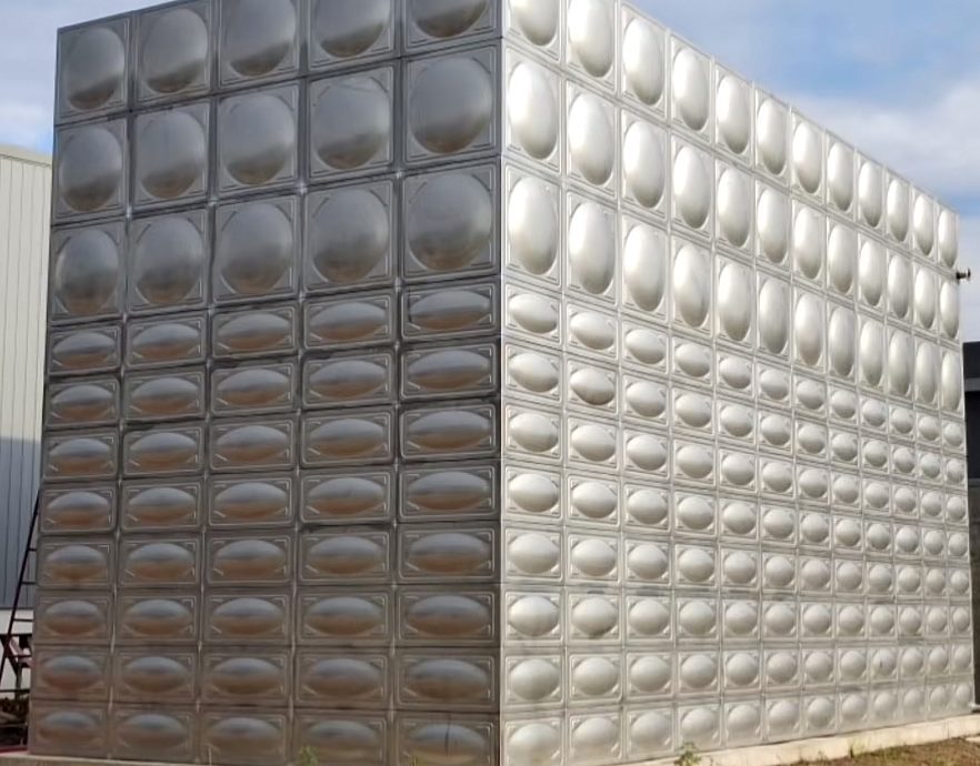 方形不锈钢水箱,采用专业成型模块拼装焊接,尺寸灵活多变,可根据地形制作成各种异型尺寸,如:7字型,凹型以及凸型等等。水箱采用食品级不锈钢制作,永不生锈;现场氩弧焊接,永不渗漏。采用1500T超大压力机压制成型板块,保证板块强度,盛水后不变形。内部采用三维拉筋,保证水箱各面受力均匀。